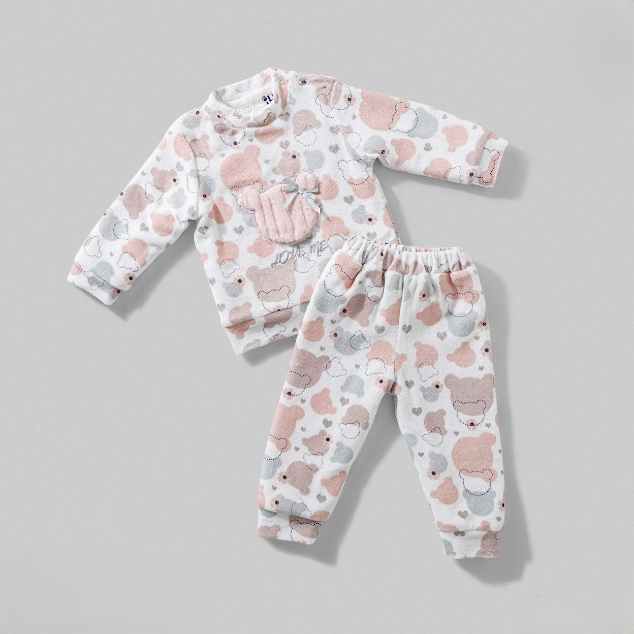 بيجامة قطيفة قطعتين مبطنه فرو ميني فيس