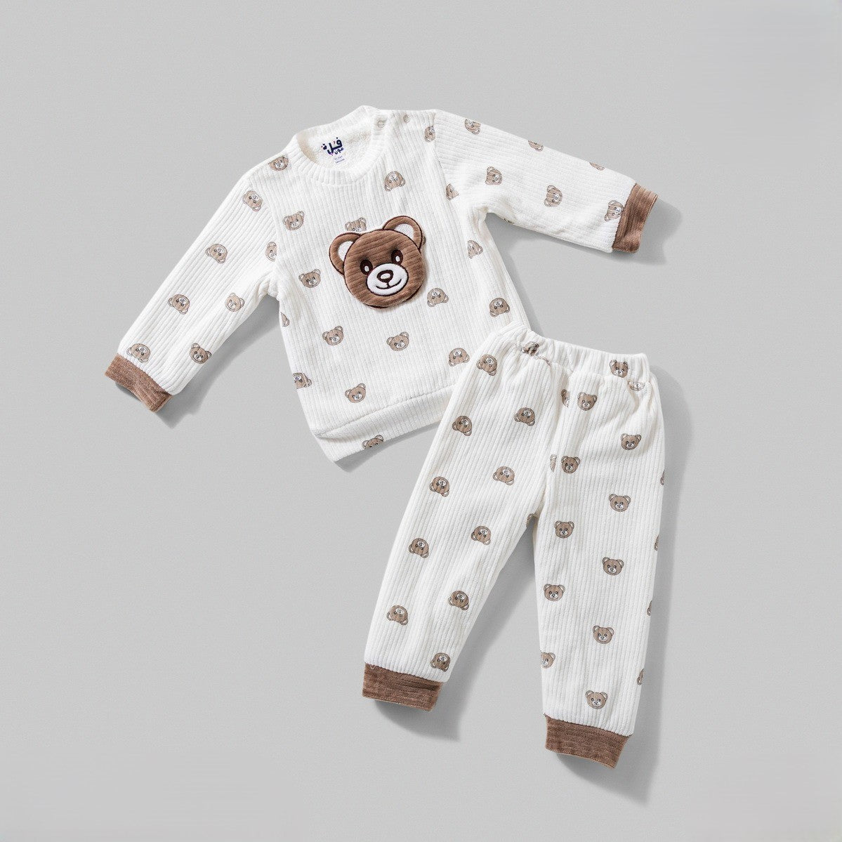 بيجامة قطيفة قطعتين مبطنة فرو بيبي فيس